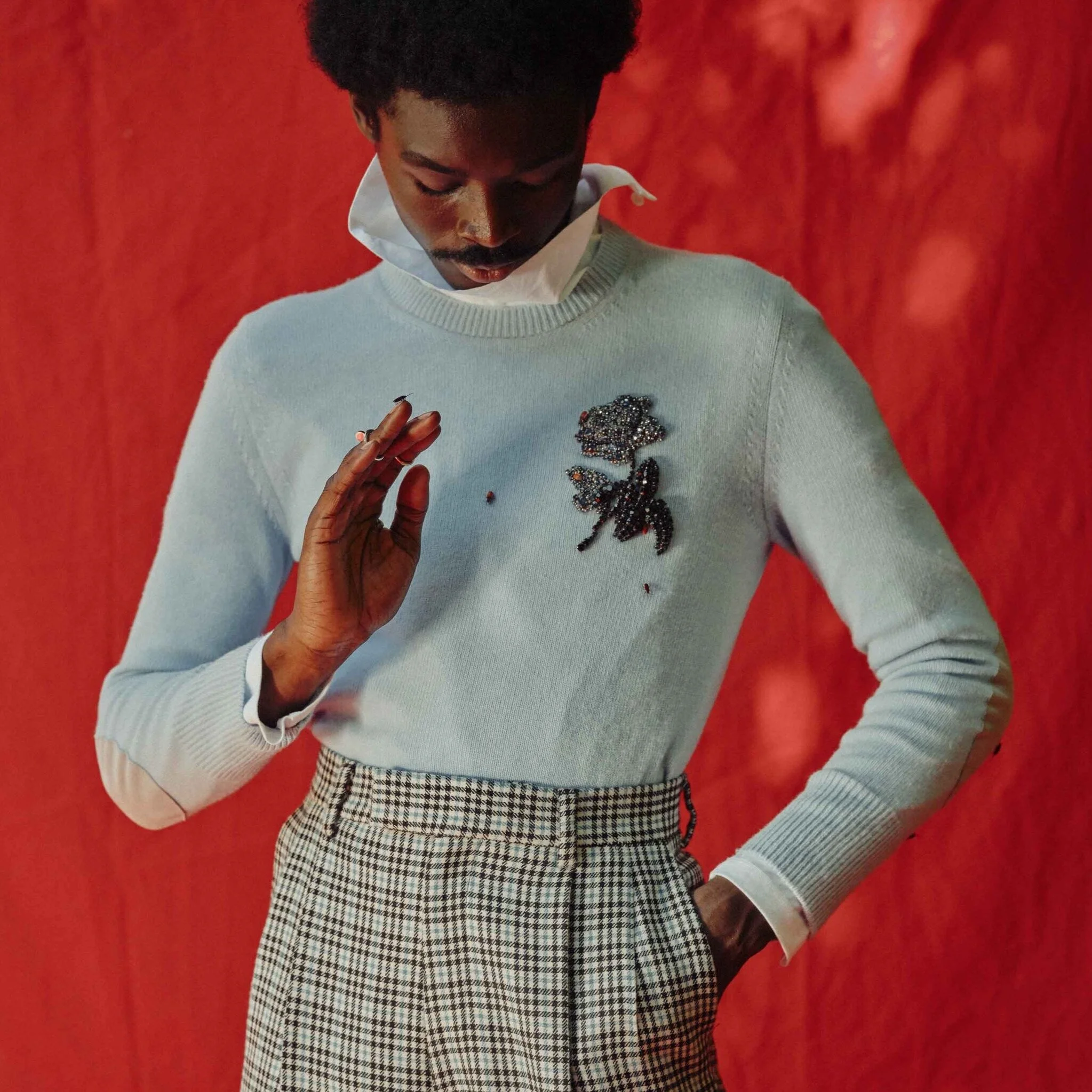 “His aura is still present at our London studio, with his original sketches lying around. It’s a strange feeling knowing that your twin is longer with you,” says Al Qasimi. “So, occasionally, I’ll scroll back to our log of phone messages and revisit references that he was heavily inspired by.” She relied heavily on the existing team while infusing the work with her own sensibilities. The challenge was to create a living memorial and honoring clothing, techniques, and certainly people from the past, while firmly stepping into the future.